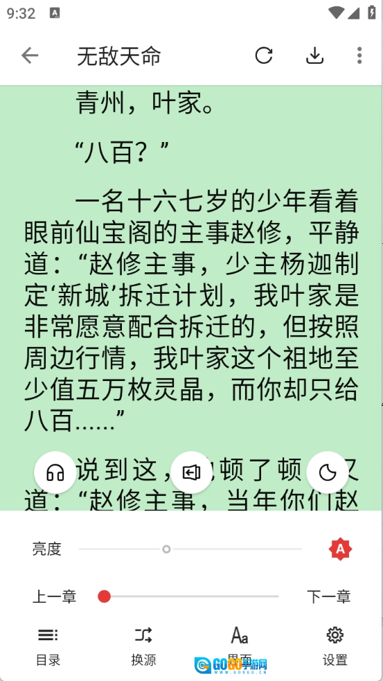 进入阅读页面后,点击屏幕中间任意位置即可进行各项设置。