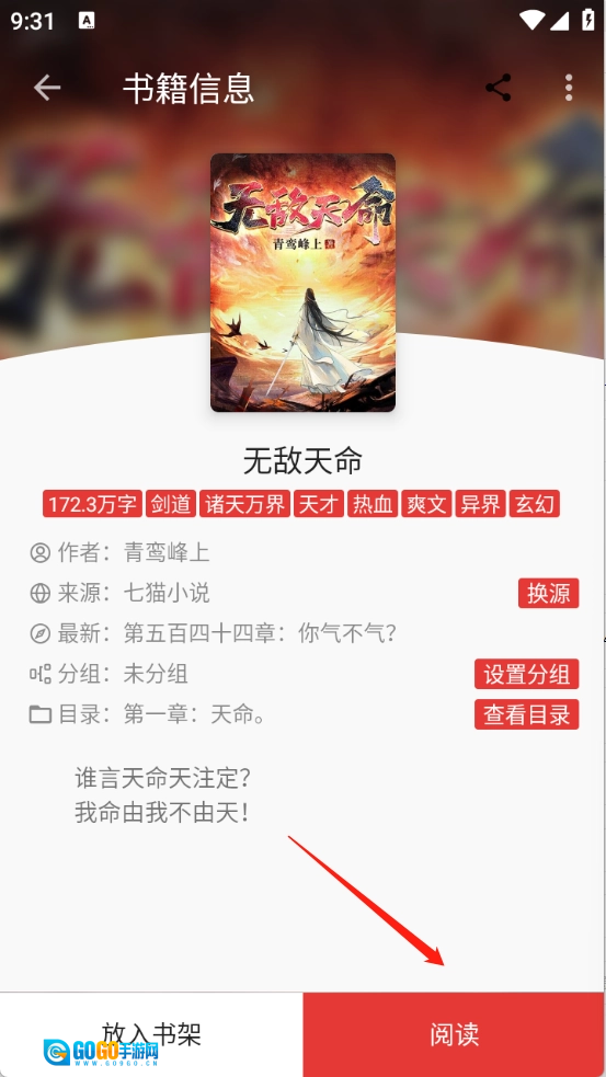 进入小说阅读详情页点击“阅读”。