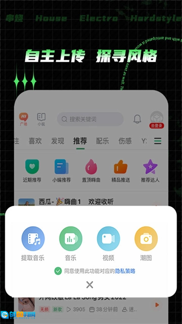 自己创作的电音歌曲作品可以上传到这里。