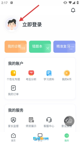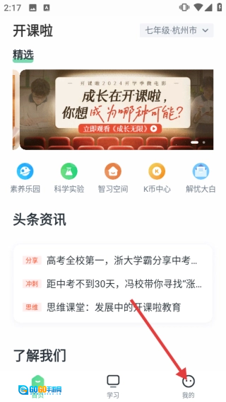 1、启动“开课啦”应用,在首页点击底部的【我的】选项,即可进入个人中心页面。