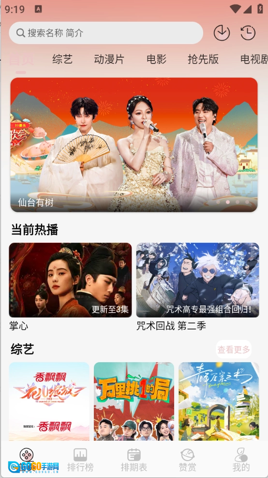 首页顶部栏里包含丰富的影视资源,涵盖电视剧、电影和综艺等多种类型。
