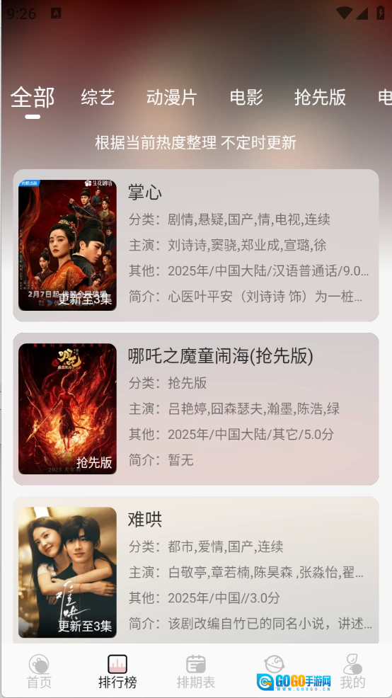 排期表会呈现每天的影视更新信息,大家可以借此及时关注自己感兴趣的影视作品。