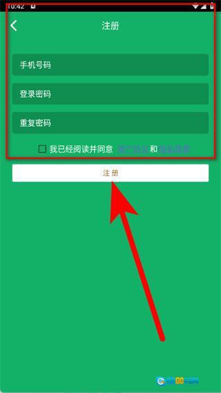 4、输入手机号码、登录密码等相关信息,勾选对应选项后,点击注册按钮,即可完成注册流程。