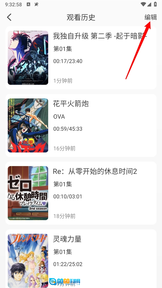 在观看历史页面点击右上角"编辑"按钮。