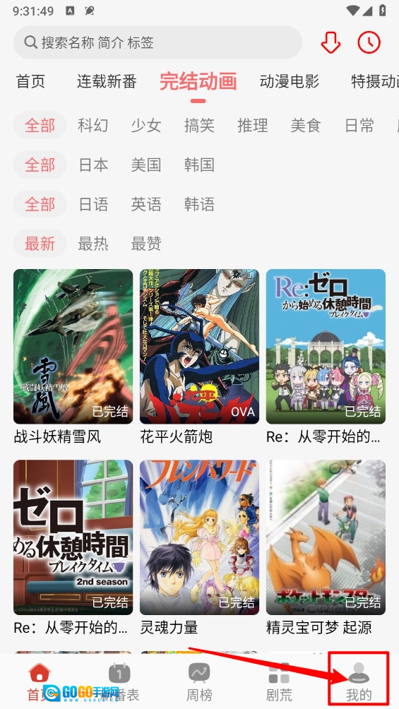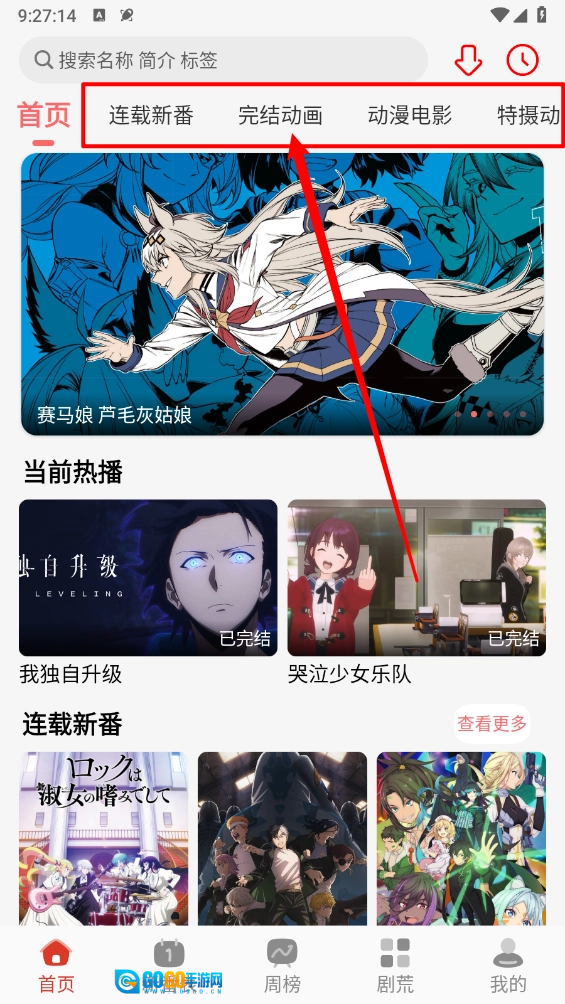 打开咕咕番应用,进入到首页界面后,按照页面上方的动漫分类,挑选出自己喜欢的动漫。