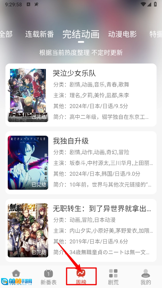 然后在周榜页面根据榜单信息进行选择观看。