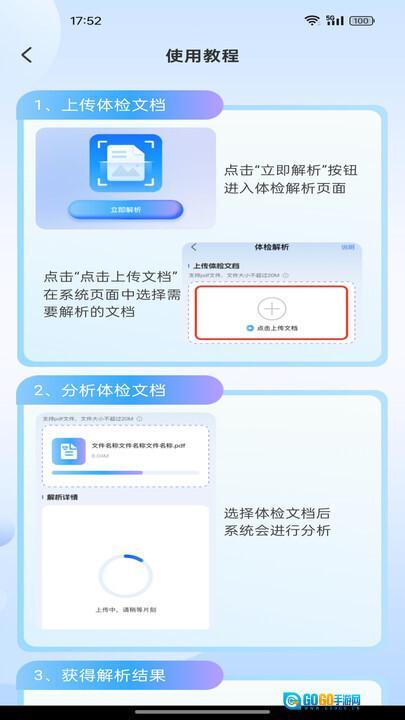 体检报告健康分析是一款能为用户提供个性化健康评估、疾病风险预测以及健康管理建议的手机应用。借助这款App,用户能够轻松解读体检数据,明晰自身健康状况,进而采取有针对性的健康改善举措。该应用兼容PDF、图片、电子文档等多种体检报告格式,使用起来简单方便。