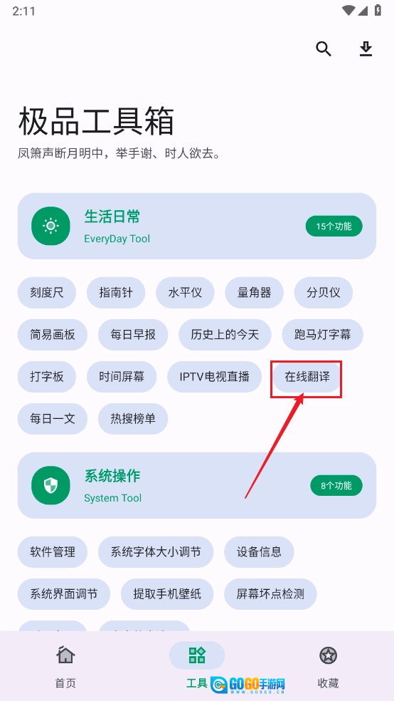 最后切换到工具板块,这里有非常多的工具,大家可以根据自己的需求打开使用。