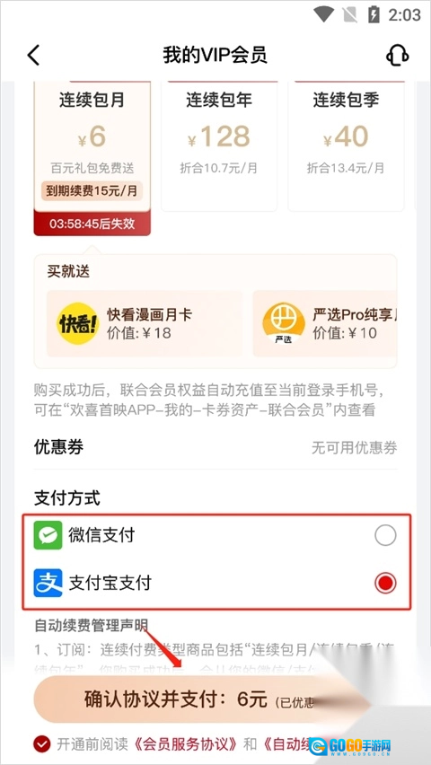 欢喜首映怎么开会员