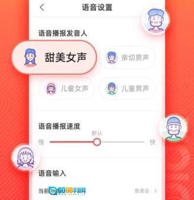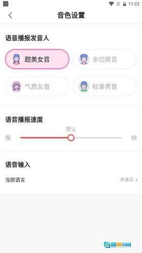 3、我们可以根据自身喜好对音色进行设置,例如设置为甜美女音、亲切男音等;同时也能调整语音播报的速度;