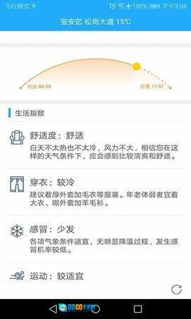 2.这款软件还能推测日出日落的时间,并且会依据温度为用户提供穿衣建议,同时给出诸如是否适合运动之类的相关提议。