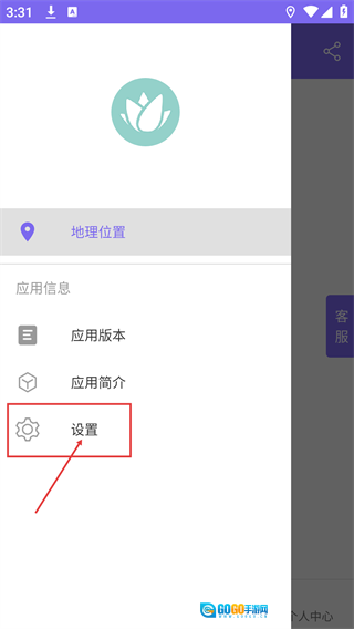 2、在侧边栏菜单里,点击【设置】这一选项,即可进入该应用的设置页面。