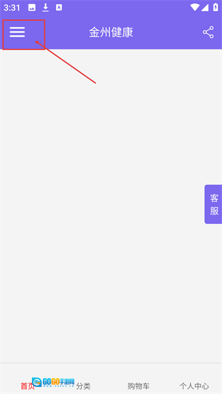 1、打开金州健康首页后,点击左上角显示为三条横线图标的菜单按钮,即可展开应用的侧边栏菜单。