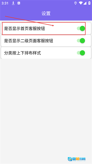 3、进入设置页面后,找到“是否显示首页客服按钮”的开关选项,您可以依据自身实际需求点击此开关,来调整它的开启或关闭状态。
