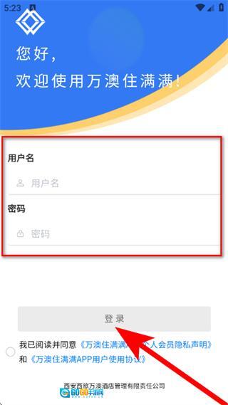 3、进入登录页面后,依次输入用户名与密码,完成勾选操作,随后点击登录按钮。