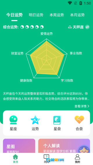 3、每日星座运势的更新时间比竞品提前2小时,用户在早上6点就能查看当天涵盖事业、爱情、健康等多方面的运势预测。