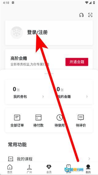 3、进入个人页面后,找到并点击登录注册按钮,即可进入手机号登录注册页面。