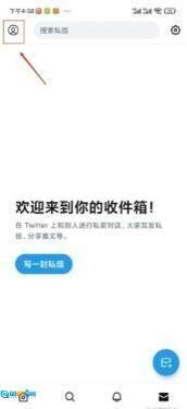 1、启动Twitter应用,进入主界面后,点击页面左上角的图标。