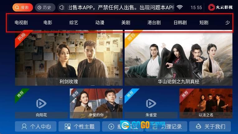 1、在本站的火云影视中打开后,首页顶部能看到电视剧、电影、综艺、动漫、美剧等分类板块。