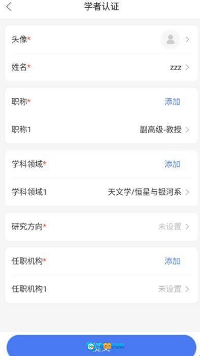 3、完善认证所需的相关信息,像头像、姓名、职称、学科领域、研究方向和任职机构等,提交这些信息后就能完成认证。