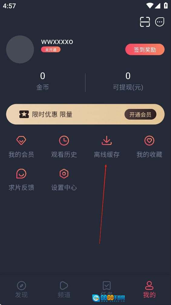 1. 打开横风动漫应用后,点击底部导航栏中的“我的”选项,即可进入个人中心页面。