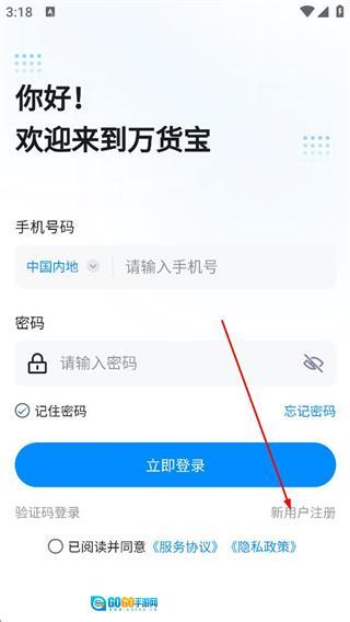 3、找到登录页面后,点击“新用户注册”选项,即可进入万货宝的注册界面。