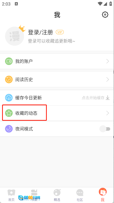 3、您可以进入“我的”页面,点击“收藏的动态”选项,查看自己收藏的漫画内容。