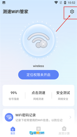 1、在【测速WiFi管家】的主界面上,点击右上角的【设置】图标,即可进入设置页面,此页面涵盖了多种功能选项。