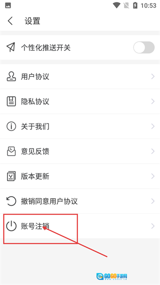 2、在设置页面找到【账号注销】选项并点击,此选项是用来发起账号注销流程的,操作时需要谨慎。