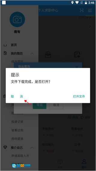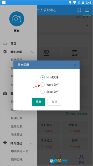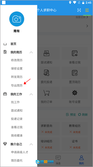 2. 选择“导出简历”功能并点击进入。