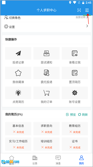1. 个人求职中心:求职动态可自主掌握**简历填写、头像上传以及职场图片和证书的添加操作都非常简单便捷。
