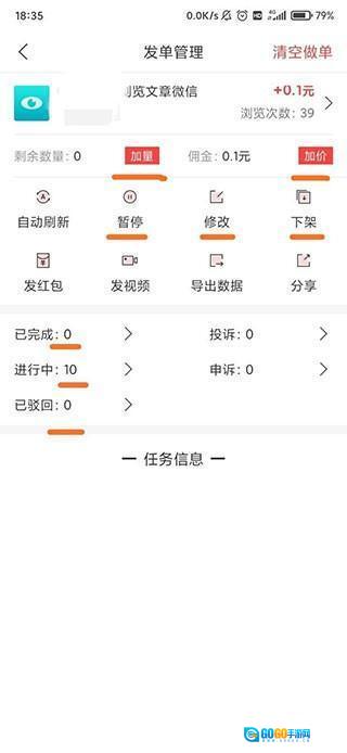 5、任务上架后,可在发布管理的“已上架”板块中找到。点击该任务会进入对应界面,你能随时查看并管理任务进度,也可对任务进行修改,还能在24小时后下架任务。若任务未完成,相关佣金将退回至任务余额,可供下次发布使用;要是任务完成效果良好,还可以选择加量或加价。
