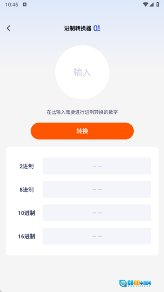 2、点击进制转换器功能,输入待转换的数字,随后将其转换为二进制、八进制、十进制和十六进制;