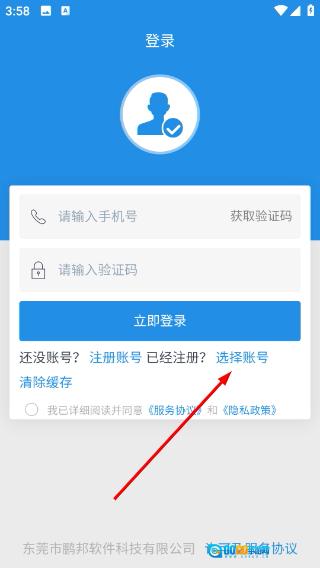 1、登录页面支持手机号加验证码的登录方式;要是需要切换账号,点击“选择账号”这一选项,就能进入账号列表页面。