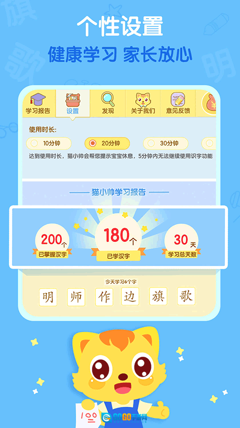 - 标签: 猫小帅学汉字 儿童识字软件 趣味学习工具