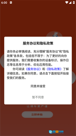 1、先安装该软件,安装完成后打开它,接着点击同意并接受相关条款,随后进入软件的注册界面;