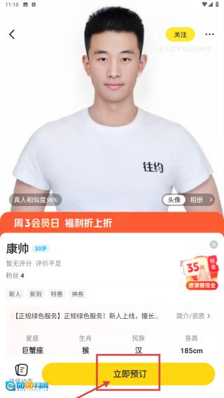 4、进入技师详情页面后,点击“立即预订”按钮,即可启动服务预订流程。