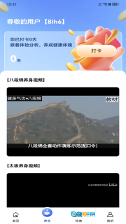 3、平台收录了八段锦、太极等各类养生视频,还加入了打卡学习功能,能助力用户系统化地学习养生知识,逐步养成健康的生活习惯。