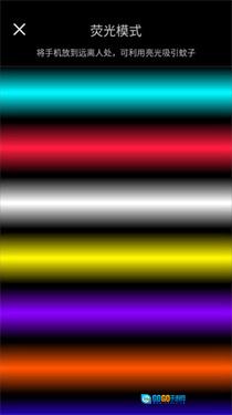 4、开启荧光捕蚊功能后,还能自由调整荧光棒的颜色,之后把手机放到远处就可以了。这个娱乐功能还挺不错的。