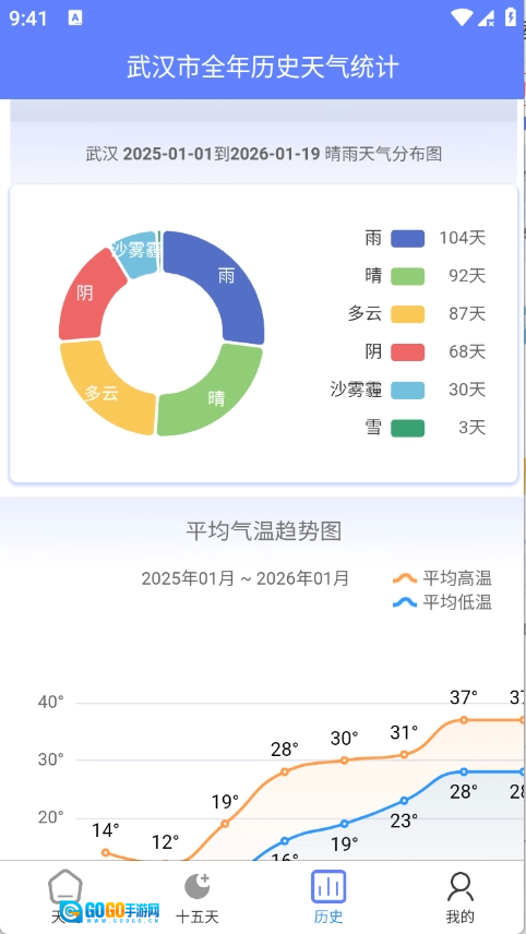 4、包含了晴雨天统计,平均气温趋势图等信息。