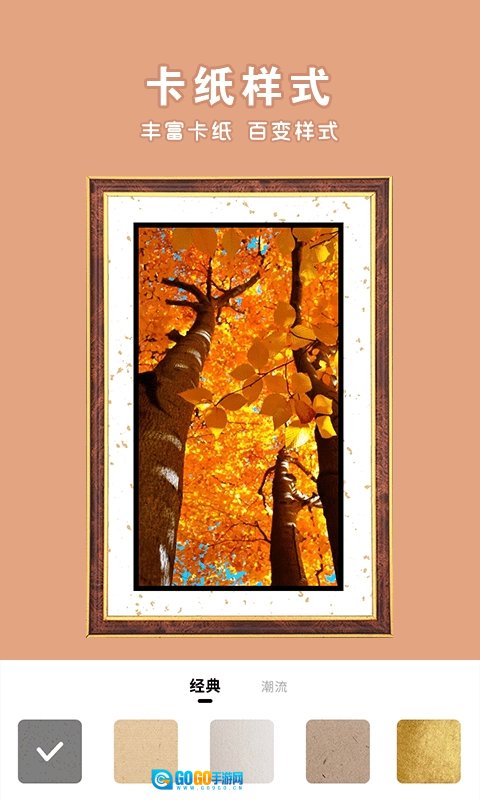 3、相框边框会以最温柔的方式定格美好瞬间,我们通过精心装裱,为您的作品配备富有高级感的画框与卡纸。无论是悬挂在家中墙面、艺术画廊,还是展示于宣传栏,都能呈现理想效果。我们提供数十种不同风格的装裱素材,结合专业的装裱技术,让您的作品更添光彩。