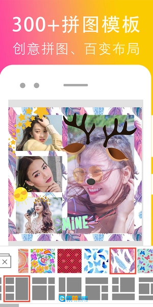 2、300+拼图模板、实用滤镜、纹理、美图贴纸。