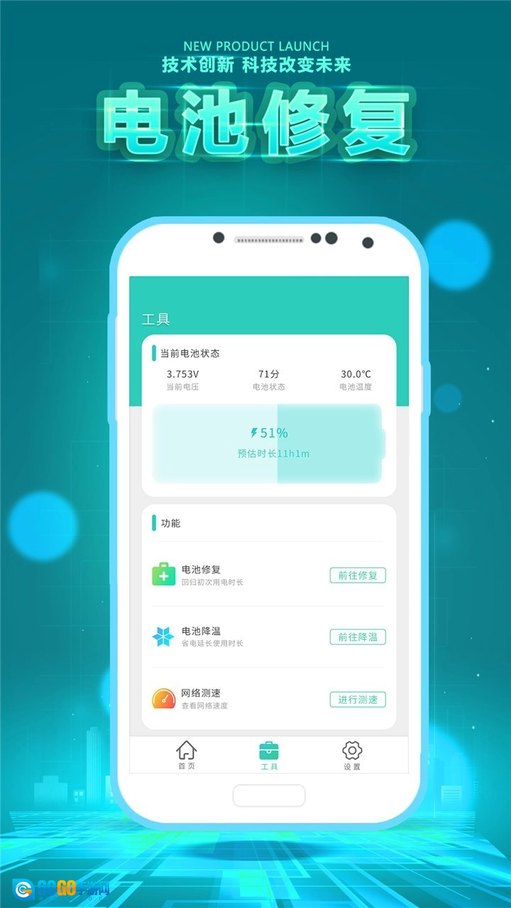 5、【电池修复与降温】工具箱里还能帮您对手机电池进行修复和降温处理,以此保护电池,让它在长期使用中续航更稳定、更安全!