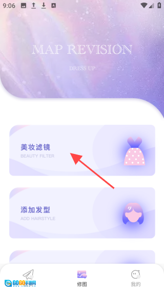 2、打开【修图】界面,点击【美妆滤镜】图标。