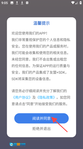 1、安装后,阅读并同意“温馨提示”。