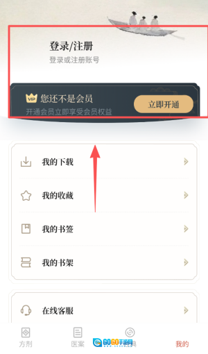 4. 点击底部导航栏的“我的”,即可管理您的收藏与书签。若您尚未登录,系统会提示您成为会员,以便享受更多优惠。