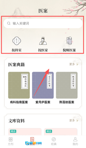 3. 在查看病例内容时,您可以按科室、医师或直接浏览倪石等经典病例。您还可以输入关键字,以精确过滤需要引用的案例。