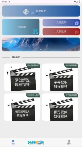 2、首页新增了剪辑、短剧解说、文案提取等实用功能,同时还提供了丰富的操作教程供用户查看。