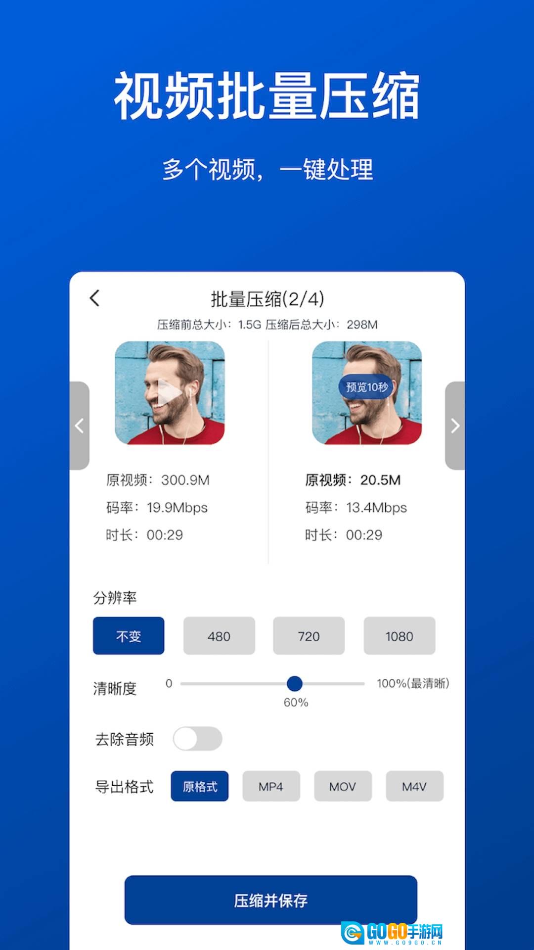 1、【视频压缩】设有多种压缩等级可选,兼容主流视频格式,在缩减文件体积的同时力求保留原有画质,帮助优化存储空间占用。
