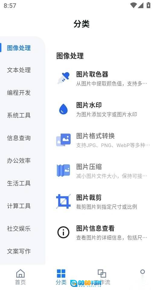 1、具备图片压缩、裁剪、多格式转换、自定义水印添加以及取色器颜色提取等功能。